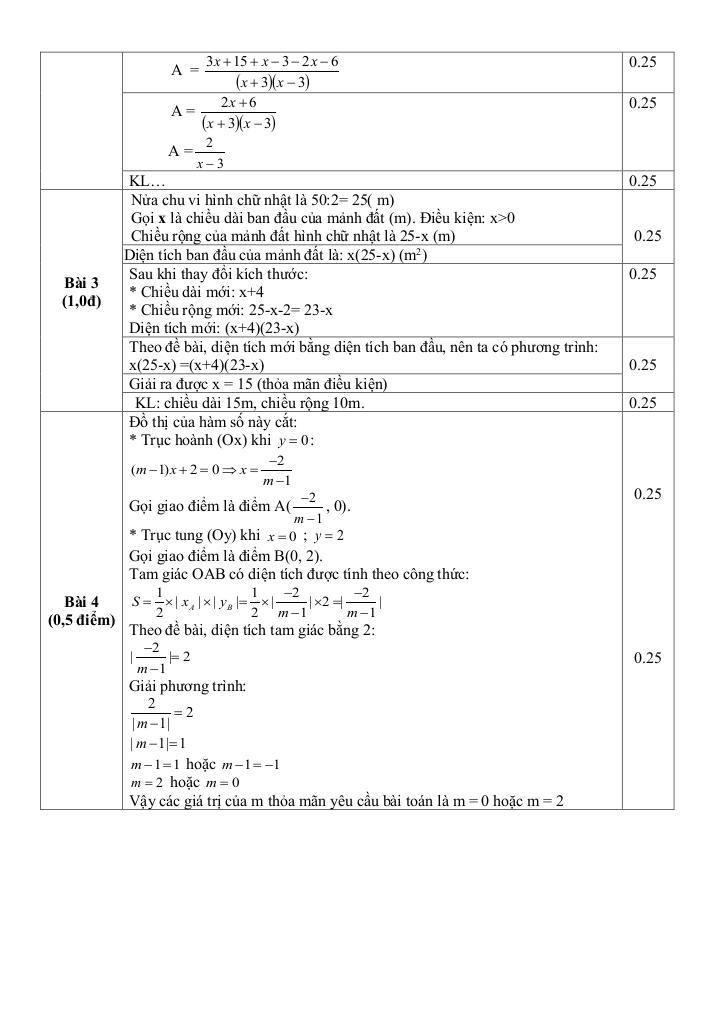 + Cho hàm số bậc nhất y = (m – 1)x + 2. Tìm m để đồ thị hàm số trên tạo với 2 trục toạ độ một tam giác có diện tích bằng 2.