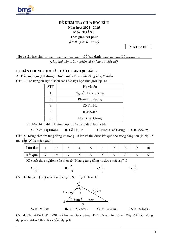 Toán học luôn là một môn học quan trọng, giúp học sinh phát triển tư duy logic và kỹ năng giải quyết vấn đề. Để hỗ trợ các bạn học sinh và giáo viên trong việc học tập và giảng dạy, bài viết này sẽ cung cấp lời giải chi tiết và đáp án chính xác cho chủ đề đề giữa học kì 2 toán 8 năm 2024 – 2025 trường ban mai school – hà nội, giúp bạn hiểu sâu và tự tin hơn khi làm bài tập.
