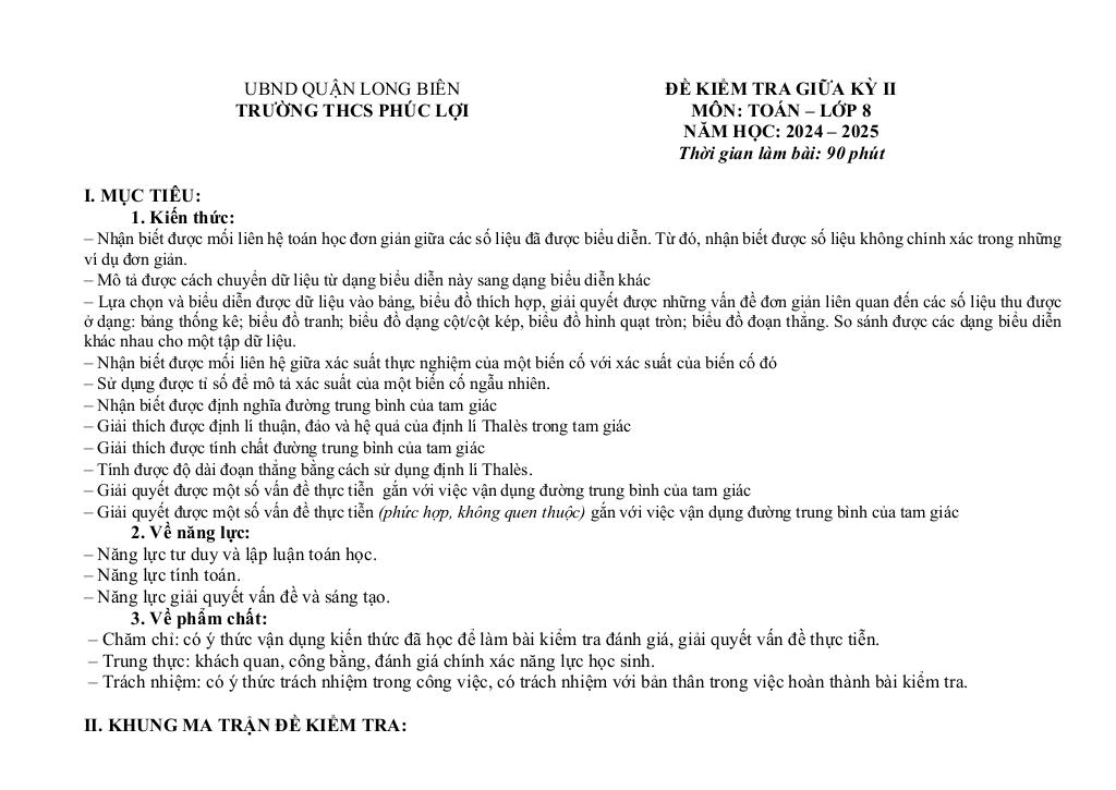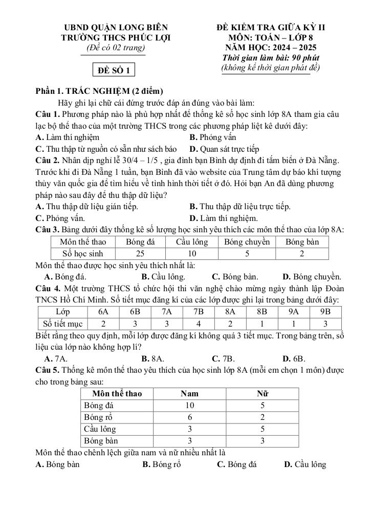 Toán học luôn là một môn học quan trọng, giúp học sinh phát triển tư duy logic và kỹ năng giải quyết vấn đề. Để hỗ trợ các bạn học sinh và giáo viên trong việc học tập và giảng dạy, bài viết này sẽ cung cấp lời giải chi tiết và đáp án chính xác cho chủ đề đề giữa học kì 2 toán 8 năm 2024 – 2025 trường thcs phúc lợi – hà nội, giúp bạn hiểu sâu và tự tin hơn khi làm bài tập.