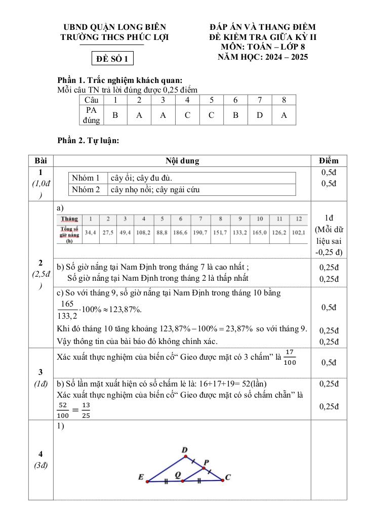 Giải Toán đề giữa học kì 2 toán 8 năm 2024 – 2025 trường thcs phúc lợi – hà nội với Đáp Án Mới Nhất
