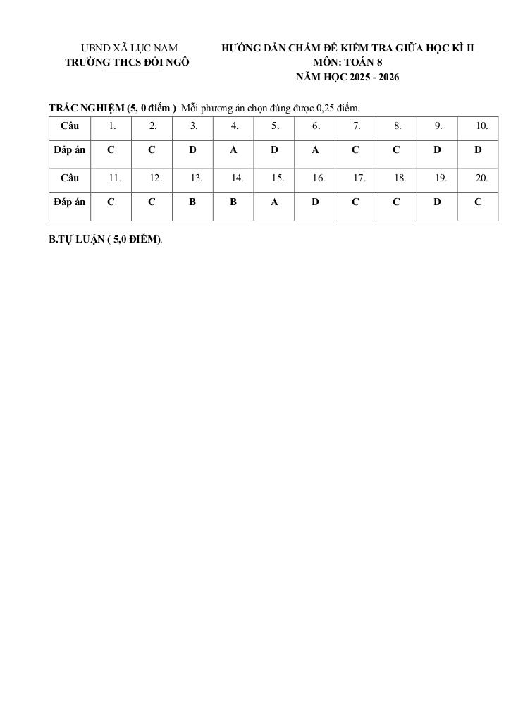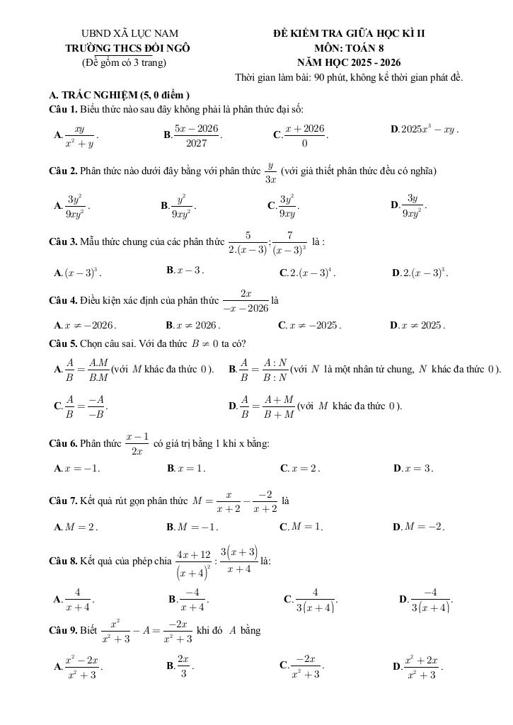 Toán học luôn là một môn học quan trọng, giúp học sinh phát triển tư duy logic và kỹ năng giải quyết vấn đề. Để hỗ trợ các bạn học sinh và giáo viên trong việc học tập và giảng dạy, bài viết này sẽ cung cấp lời giải chi tiết và đáp án chính xác cho chủ đề đề giữa học kì 2 toán 8 năm 2025 – 2026 trường thcs đồi ngô – bắc ninh, giúp bạn hiểu sâu và tự tin hơn khi làm bài tập.