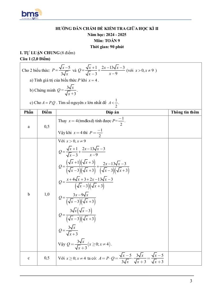 Toán học luôn là một môn học quan trọng, giúp học sinh phát triển tư duy logic và kỹ năng giải quyết vấn đề. Để hỗ trợ các bạn học sinh và giáo viên trong việc học tập và giảng dạy, bài viết này sẽ cung cấp lời giải chi tiết và đáp án chính xác cho chủ đề đề giữa học kì 2 toán 9 năm 2024 – 2025 trường ban mai school – hà nội, giúp bạn hiểu sâu và tự tin hơn khi làm bài tập.