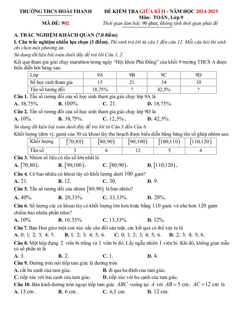 đề giữa học kì 2 toán 9 năm 2024 – 2025 trường thcs hoài thanh – bình định đặc sắc thuộc chuyên mục