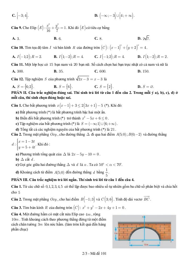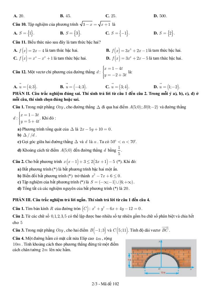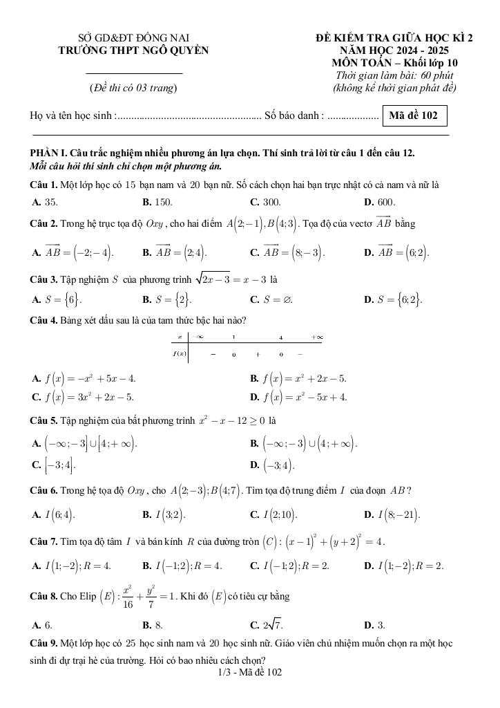 Giải Toán đề giữa học kỳ 2 toán 10 năm 2024 – 2025 trường thpt ngô quyền – đồng nai với Đáp Án Mới Nhất
