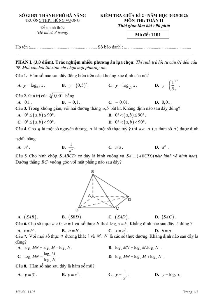 đề giữa học kỳ 2 toán 11 năm 2025 – 2026 trường thpt hùng vương – đà nẵng – hành trang không thể thiếu trong chuyên mục