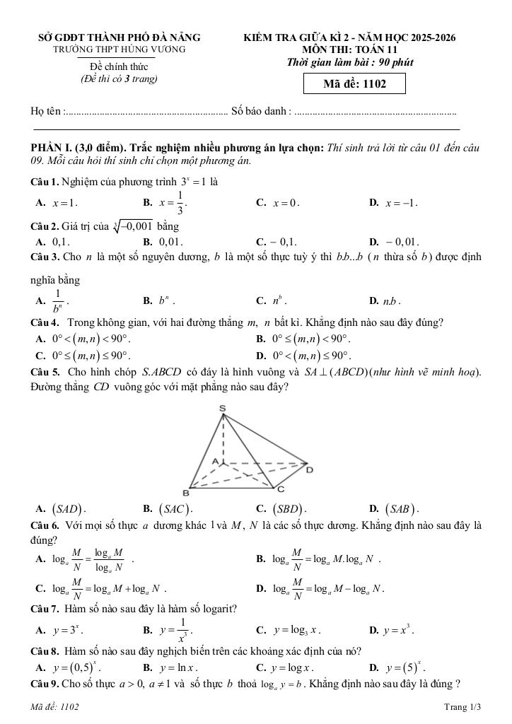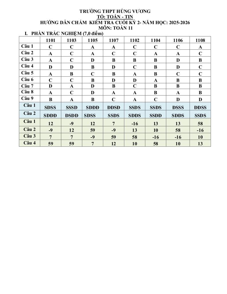 Giải Toán đề giữa học kỳ 2 toán 11 năm 2025 – 2026 trường thpt hùng vương – đà nẵng với Đáp Án Mới Nhất