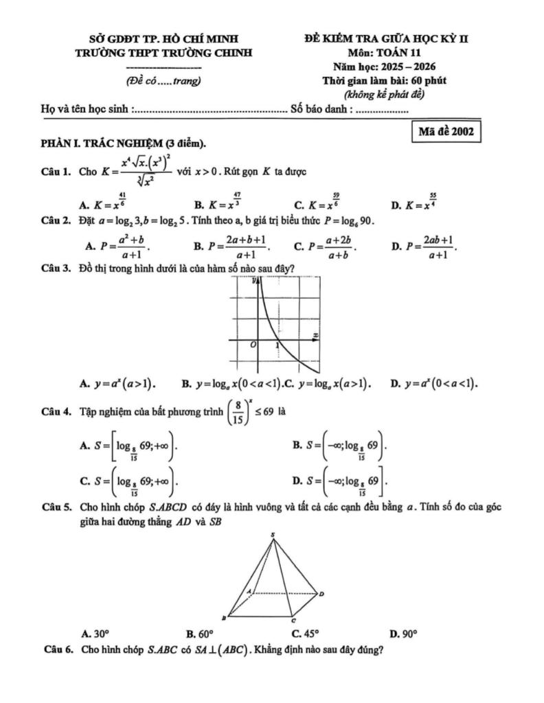 Giải Toán đề giữa học kỳ 2 toán 11 năm 2025 – 2026 trường thpt trường chinh – tp hcm với Đáp Án Mới Nhất
