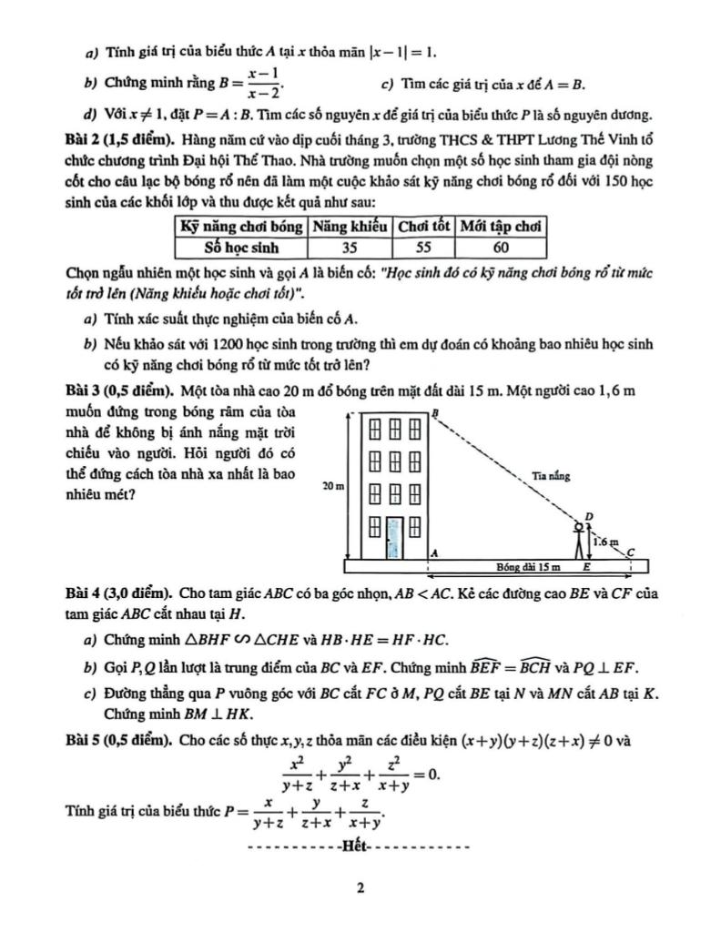 Giải Toán đề giữa học kỳ 2 toán 8 năm 2025 – 2026 trường lương thế vinh – hà nội với Đáp Án Mới Nhất