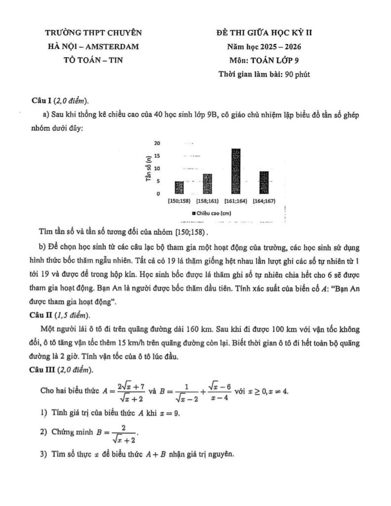 Trích dẫn Đề giữa học kỳ 2 Toán 9 năm 2025 – 2026 trường THPT chuyên Hà Nội – Amsterdam: