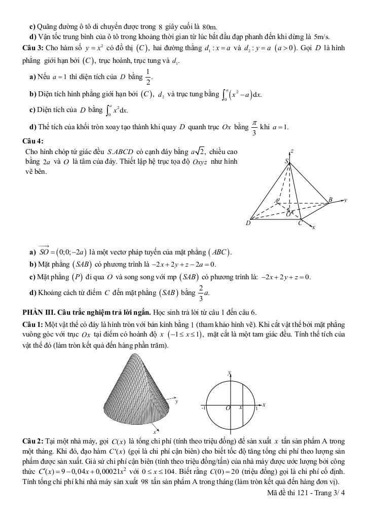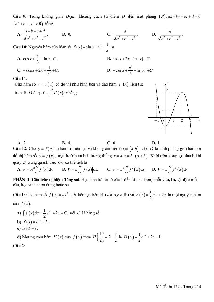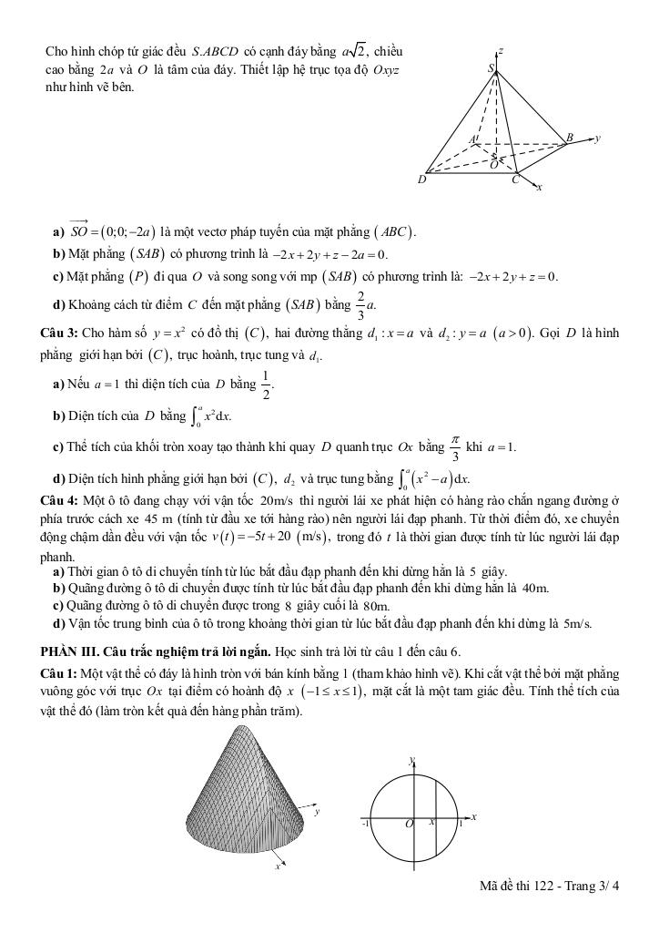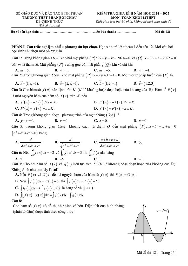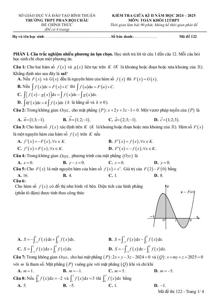 Trích dẫn Đề giữa kì 2 Toán 12 năm 2024 – 2025 trường THPT Phan Bội Châu – Bình Thuận: