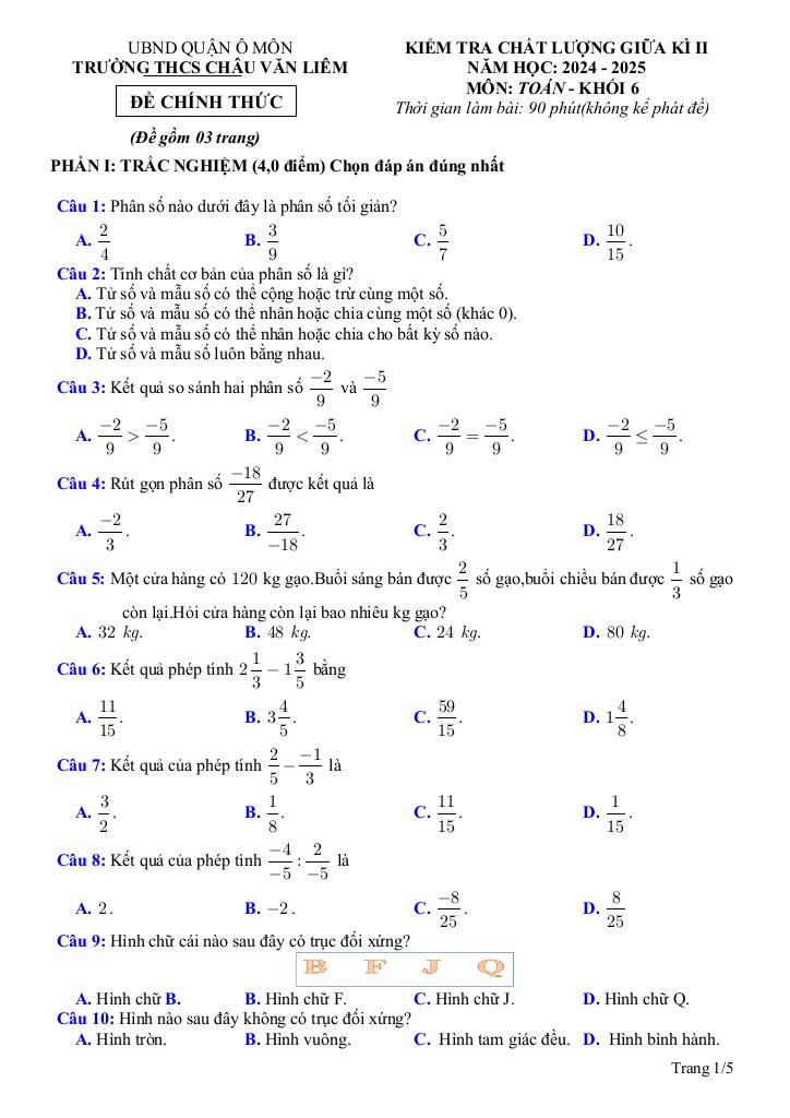 Toán học luôn là một môn học quan trọng, giúp học sinh phát triển tư duy logic và kỹ năng giải quyết vấn đề. Để hỗ trợ các bạn học sinh và giáo viên trong việc học tập và giảng dạy, bài viết này sẽ cung cấp lời giải chi tiết và đáp án chính xác cho chủ đề đề giữa kì 2 toán 6 năm 2024 – 2025 trường thcs châu văn liêm – cần thơ, giúp bạn hiểu sâu và tự tin hơn khi làm bài tập.