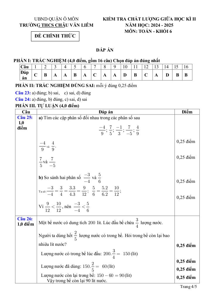 Giải Toán đề giữa kì 2 toán 6 năm 2024 – 2025 trường thcs châu văn liêm – cần thơ với Đáp Án Mới Nhất