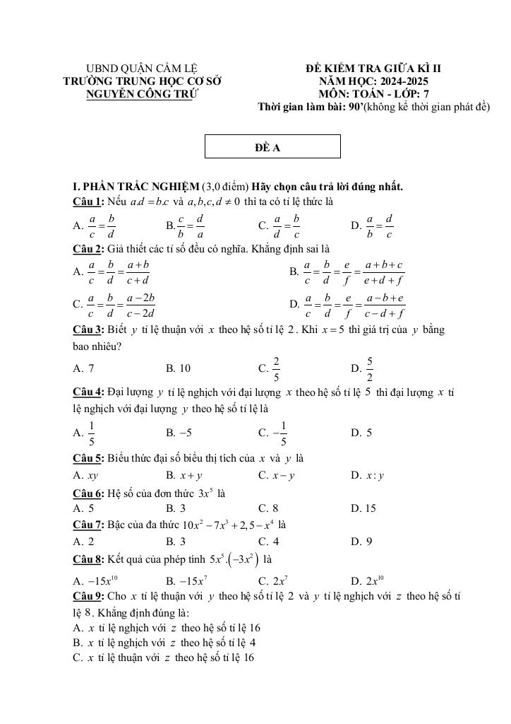 đề giữa kì 2 toán 7 năm 2024 – 2025 trường thcs nguyễn công trứ – đà nẵng là một trong những phần kiến thức quan trọng trong chương trình toán học, thường xuất hiện trong các bài kiểm tra và kỳ thi lớn. Việc nắm vững phần này không chỉ giúp bạn đạt điểm cao mà còn tạo nền tảng vững chắc để học các nội dung nâng cao hơn.