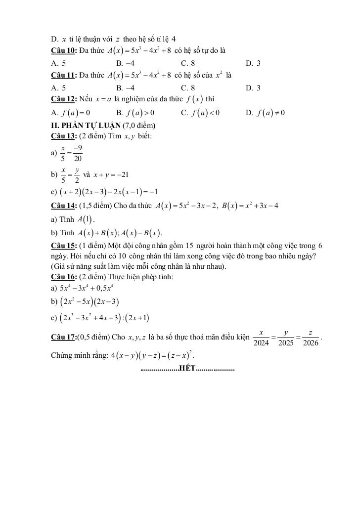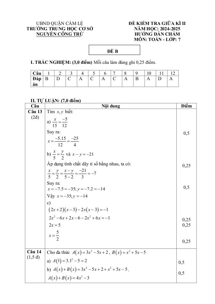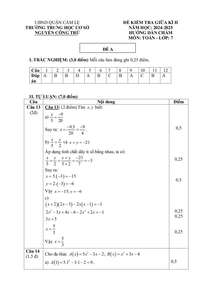 Toán học luôn là một môn học quan trọng, giúp học sinh phát triển tư duy logic và kỹ năng giải quyết vấn đề. Để hỗ trợ các bạn học sinh và giáo viên trong việc học tập và giảng dạy, bài viết này sẽ cung cấp lời giải chi tiết và đáp án chính xác cho chủ đề đề giữa kì 2 toán 7 năm 2024 – 2025 trường thcs nguyễn công trứ – đà nẵng, giúp bạn hiểu sâu và tự tin hơn khi làm bài tập.
