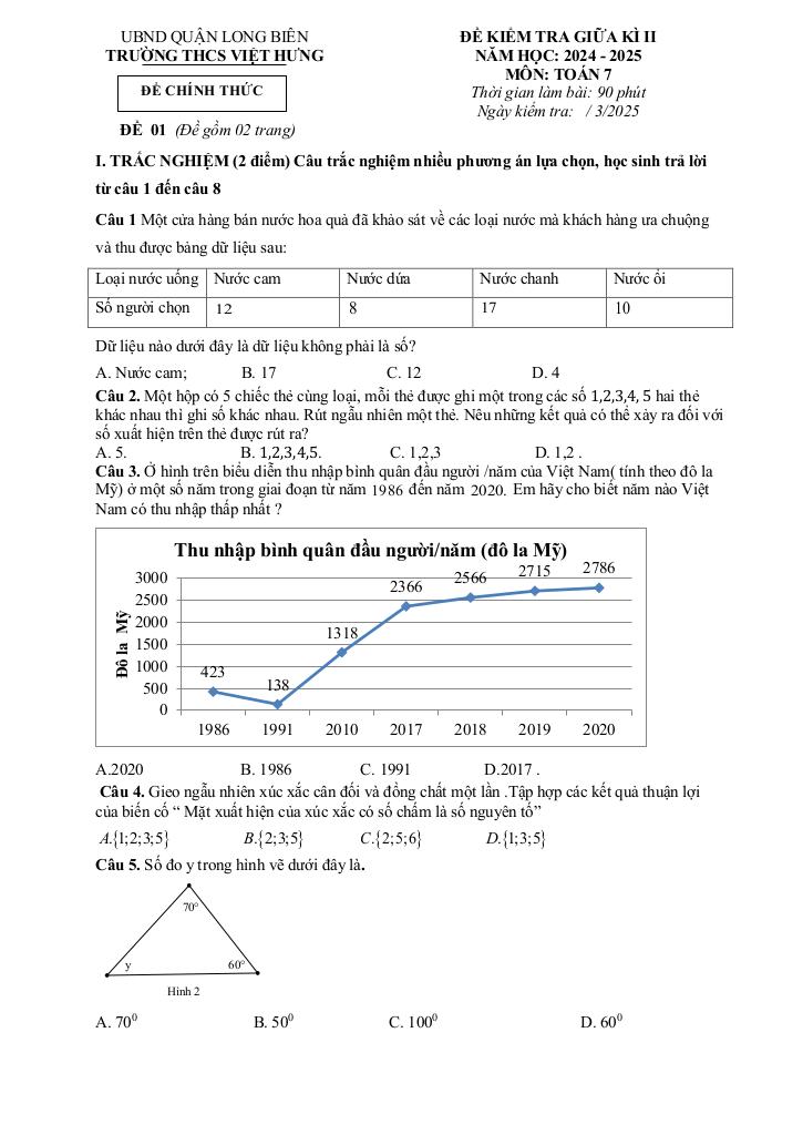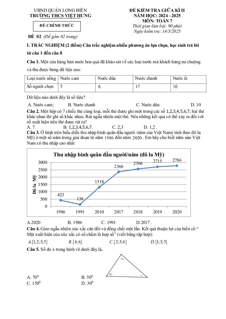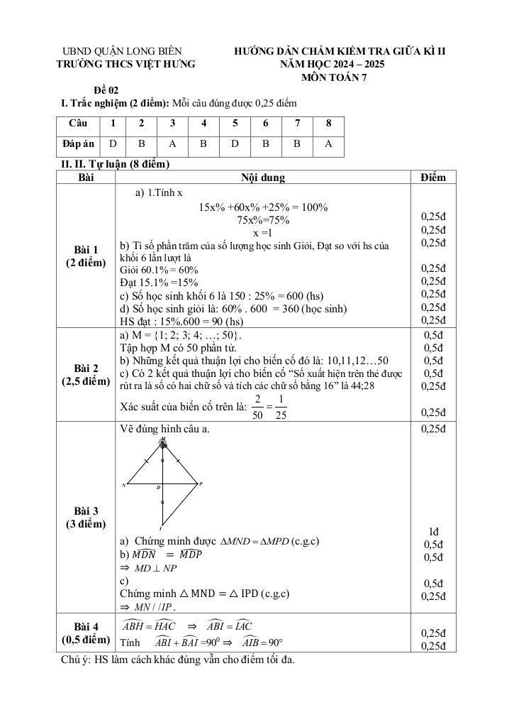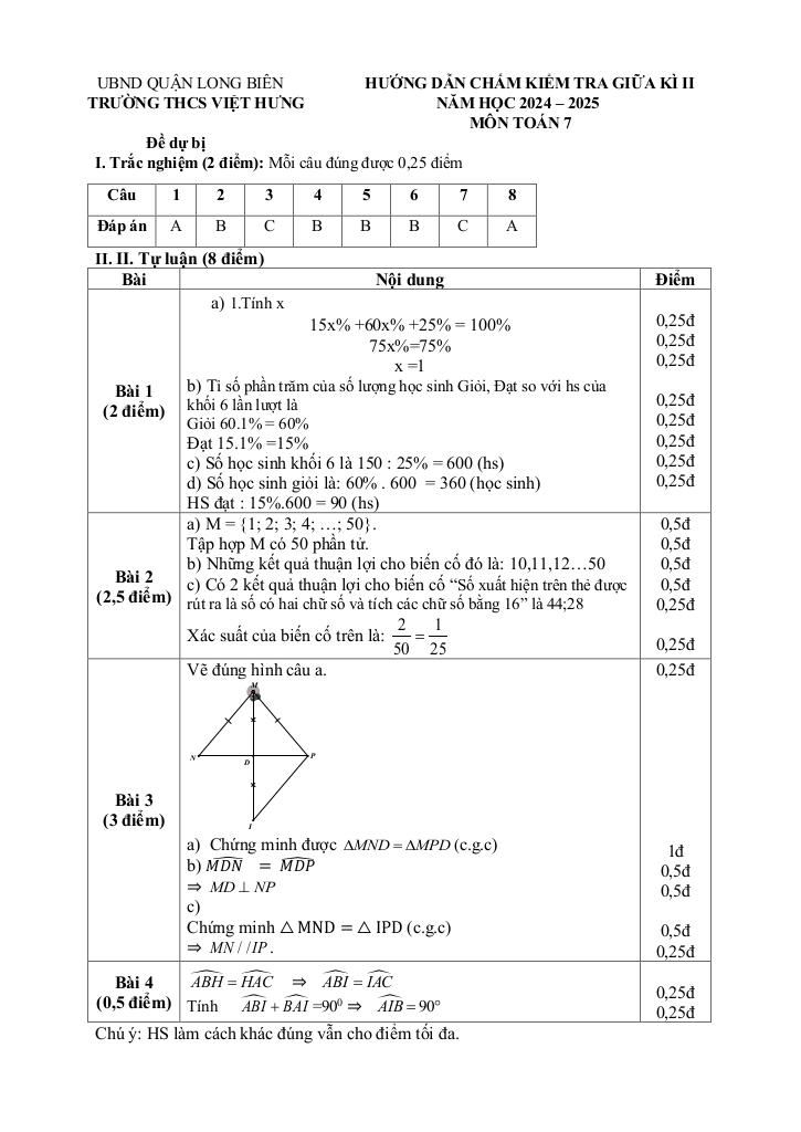 Giải Toán đề giữa kì 2 toán 7 năm 2024 – 2025 trường thcs việt hưng – hà nội với Đáp Án Mới Nhất