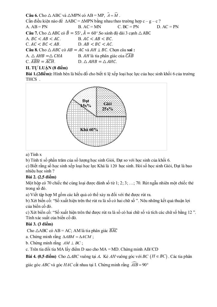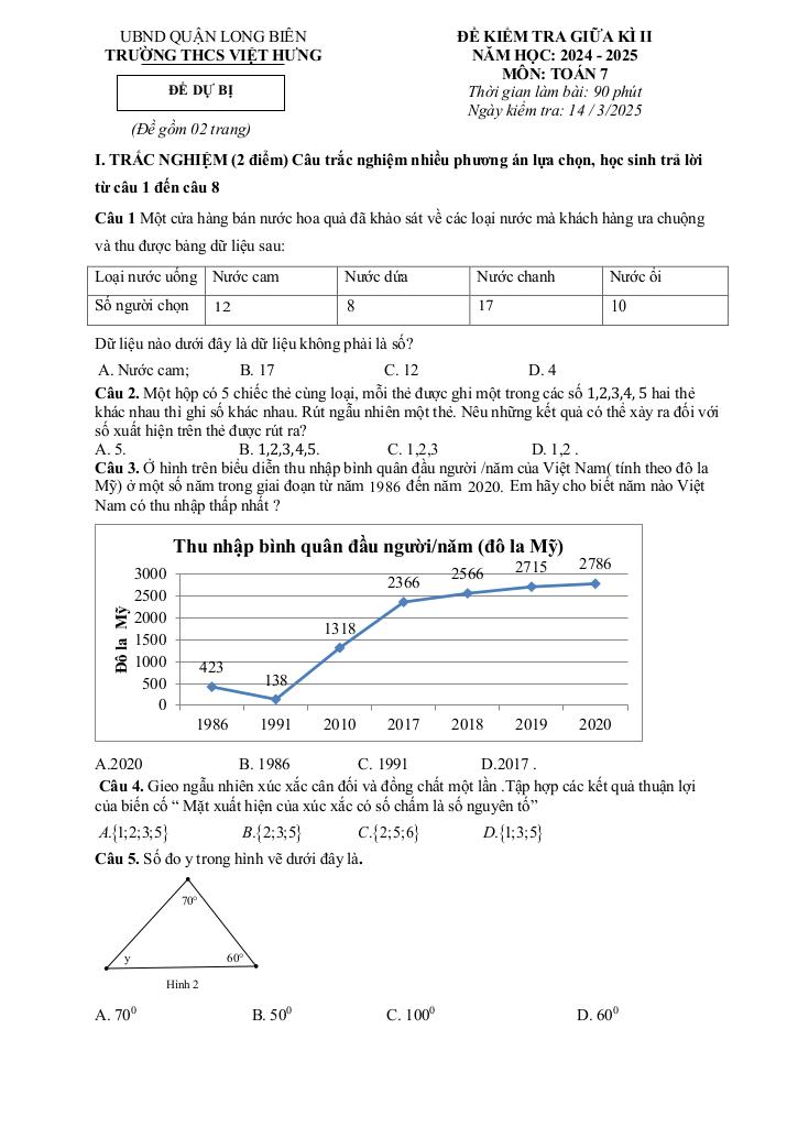đề giữa kì 2 toán 7 năm 2024 – 2025 trường thcs việt hưng – hà nội tại chuyên mục