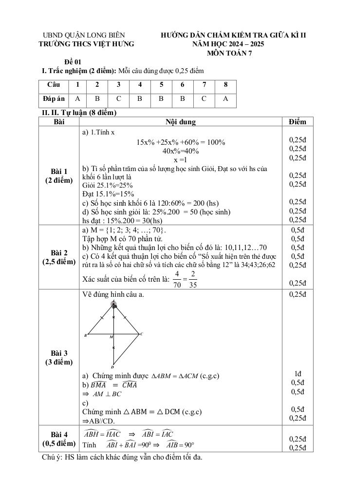 Toán học luôn là một môn học quan trọng, giúp học sinh phát triển tư duy logic và kỹ năng giải quyết vấn đề. Để hỗ trợ các bạn học sinh và giáo viên trong việc học tập và giảng dạy, bài viết này sẽ cung cấp lời giải chi tiết và đáp án chính xác cho chủ đề đề giữa kì 2 toán 7 năm 2024 – 2025 trường thcs việt hưng – hà nội, giúp bạn hiểu sâu và tự tin hơn khi làm bài tập.