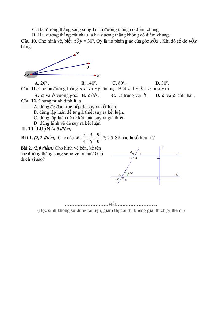 + Hai đường thẳng song song. Tiên đề Euclid. Tính chất hai đường thẳng song song.