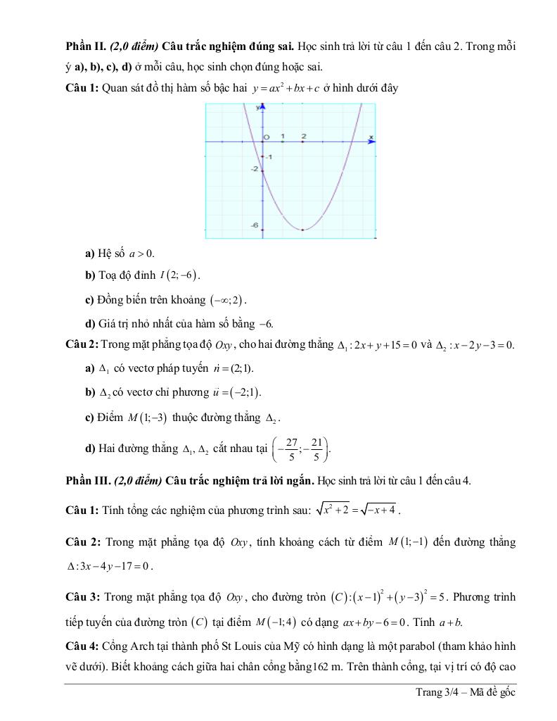 Toán học luôn là một môn học quan trọng, giúp học sinh phát triển tư duy logic và kỹ năng giải quyết vấn đề. Để hỗ trợ các bạn học sinh và giáo viên trong việc học tập và giảng dạy, bài viết này sẽ cung cấp lời giải chi tiết và đáp án chính xác cho chủ đề đề giữa kỳ 2 toán 10 năm 2024 – 2025 trường thpt âu cơ – quảng nam, giúp bạn hiểu sâu và tự tin hơn khi làm bài tập.