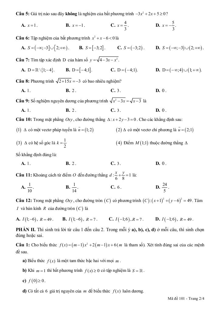 Giải Toán đề giữa kỳ 2 toán 10 năm 2024 – 2025 trường thpt nguyễn văn trỗi – khánh hòa với Đáp Án Mới Nhất