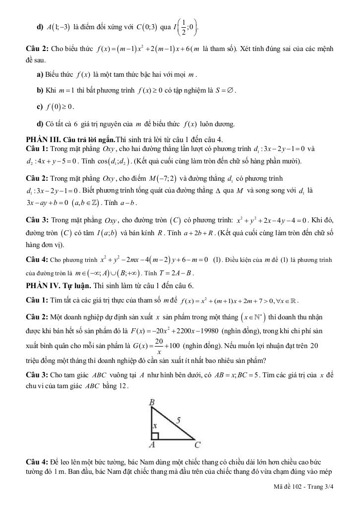 Toán học luôn là một môn học quan trọng, giúp học sinh phát triển tư duy logic và kỹ năng giải quyết vấn đề. Để hỗ trợ các bạn học sinh và giáo viên trong việc học tập và giảng dạy, bài viết này sẽ cung cấp lời giải chi tiết và đáp án chính xác cho chủ đề đề giữa kỳ 2 toán 10 năm 2024 – 2025 trường thpt nguyễn văn trỗi – khánh hòa, giúp bạn hiểu sâu và tự tin hơn khi làm bài tập.