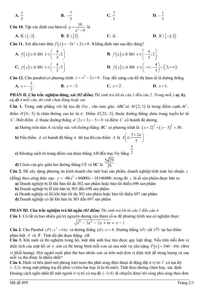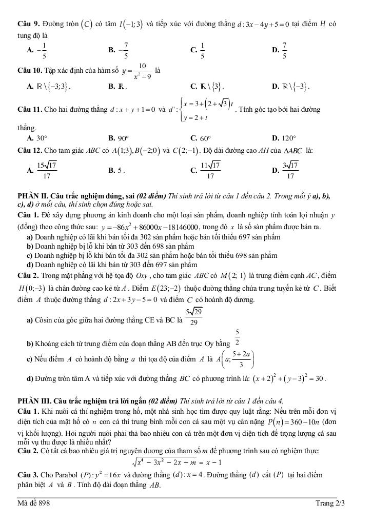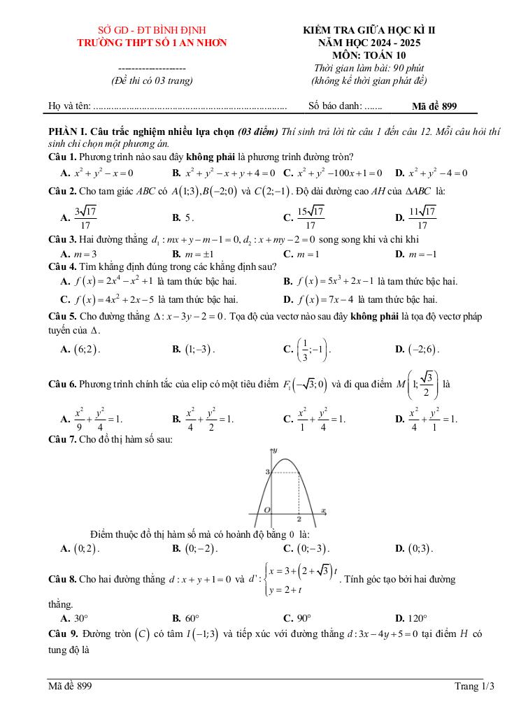 Toán học luôn là một môn học quan trọng, giúp học sinh phát triển tư duy logic và kỹ năng giải quyết vấn đề. Để hỗ trợ các bạn học sinh và giáo viên trong việc học tập và giảng dạy, bài viết này sẽ cung cấp lời giải chi tiết và đáp án chính xác cho chủ đề đề giữa kỳ 2 toán 10 năm 2024 – 2025 trường thpt số 1 an nhơn – bình định, giúp bạn hiểu sâu và tự tin hơn khi làm bài tập.