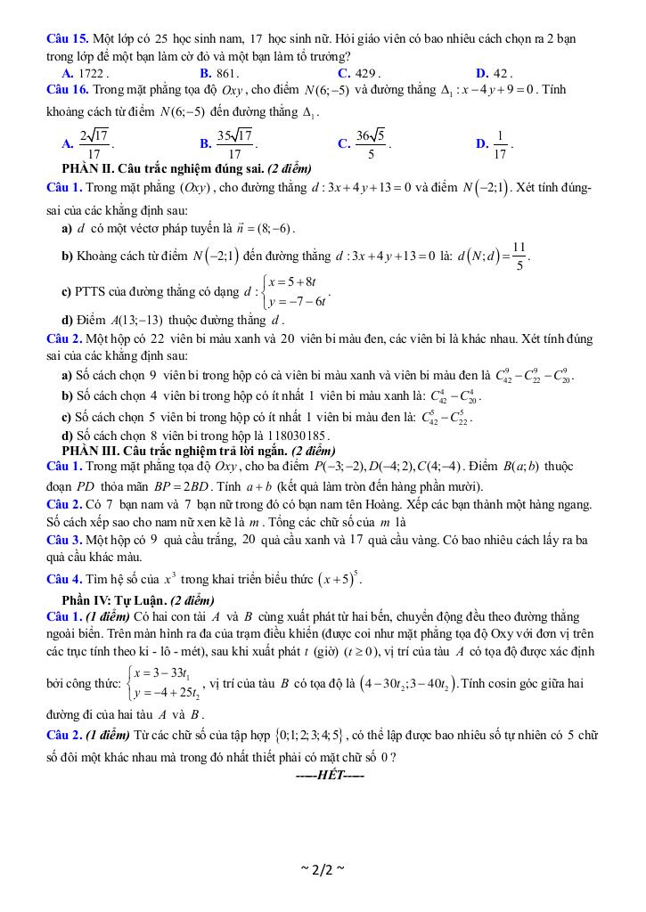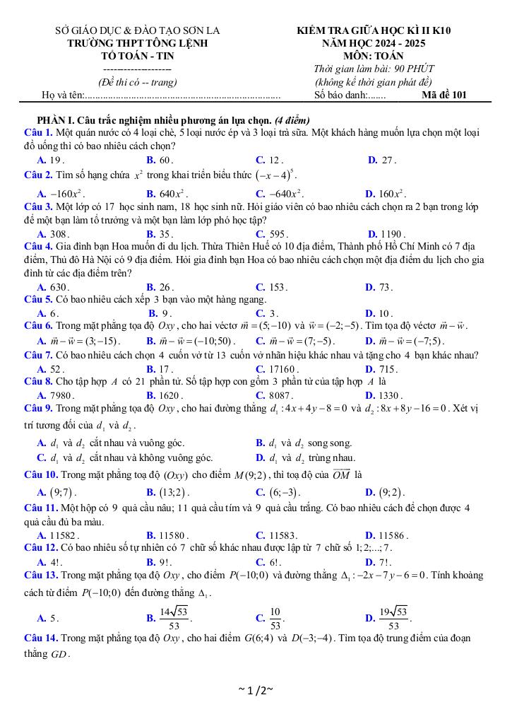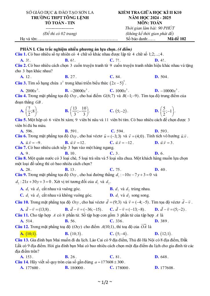 Toán học luôn là một môn học quan trọng, giúp học sinh phát triển tư duy logic và kỹ năng giải quyết vấn đề. Để hỗ trợ các bạn học sinh và giáo viên trong việc học tập và giảng dạy, bài viết này sẽ cung cấp lời giải chi tiết và đáp án chính xác cho chủ đề đề giữa kỳ 2 toán 10 năm 2024 – 2025 trường thpt tông lệnh – sơn la, giúp bạn hiểu sâu và tự tin hơn khi làm bài tập.