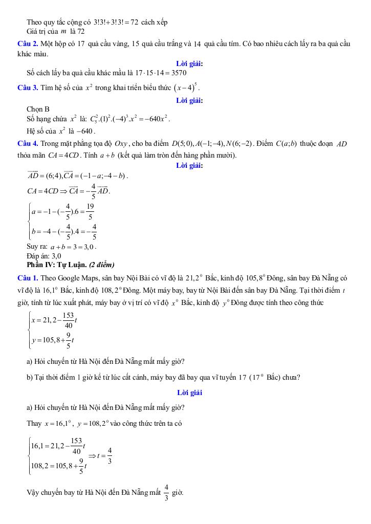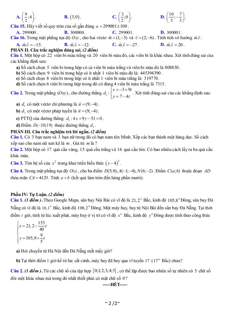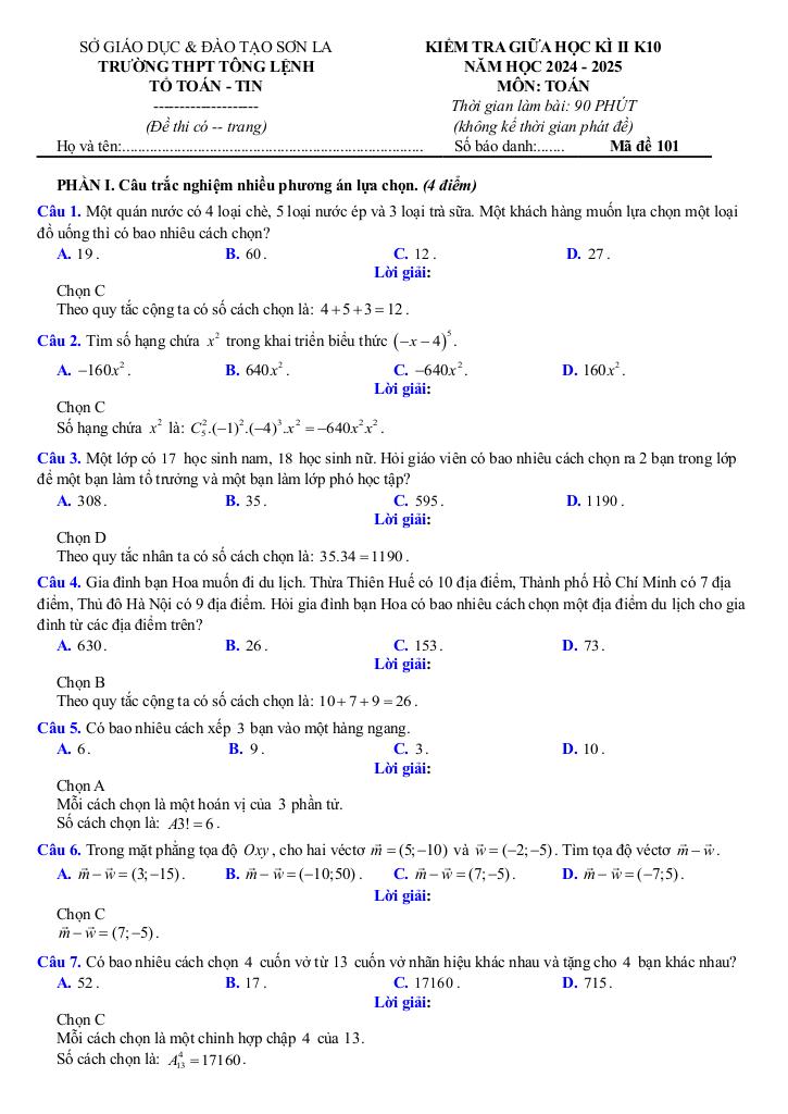 Giải Toán đề giữa kỳ 2 toán 10 năm 2024 – 2025 trường thpt tông lệnh – sơn la với Đáp Án Mới Nhất