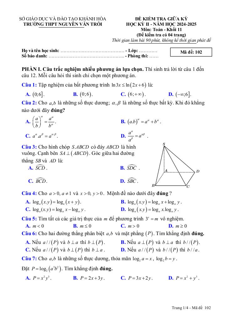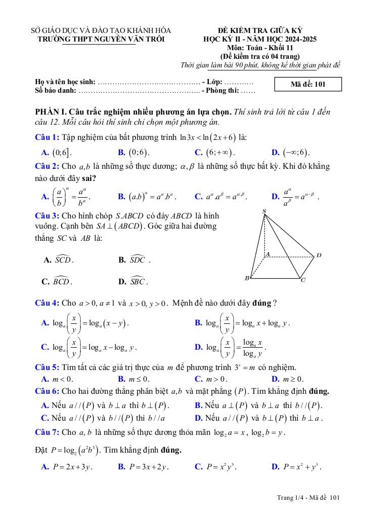 Toán học luôn là một môn học quan trọng, giúp học sinh phát triển tư duy logic và kỹ năng giải quyết vấn đề. Để hỗ trợ các bạn học sinh và giáo viên trong việc học tập và giảng dạy, bài viết này sẽ cung cấp lời giải chi tiết và đáp án chính xác cho chủ đề đề giữa kỳ 2 toán 11 năm 2024 – 2025 trường thpt nguyễn văn trỗi – khánh hòa, giúp bạn hiểu sâu và tự tin hơn khi làm bài tập.
