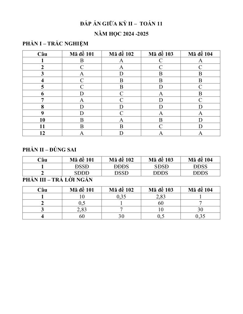 Giải Toán đề giữa kỳ 2 toán 11 năm 2024 – 2025 trường thpt nguyễn văn trỗi – khánh hòa với Đáp Án Mới Nhất