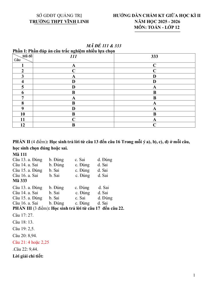 Toán học luôn là một môn học quan trọng, giúp học sinh phát triển tư duy logic và kỹ năng giải quyết vấn đề. Để hỗ trợ các bạn học sinh và giáo viên trong việc học tập và giảng dạy, bài viết này sẽ cung cấp lời giải chi tiết và đáp án chính xác cho chủ đề đề giữa kỳ 2 toán 12 năm 2025 – 2026 trường thpt vĩnh linh – quảng trị, giúp bạn hiểu sâu và tự tin hơn khi làm bài tập.