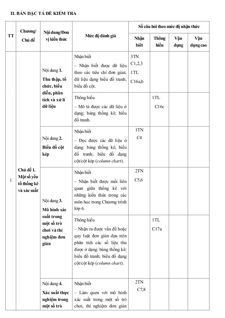 Chủ đề 1. Một số yếu tố thống kê và xác suất (13 tiết).