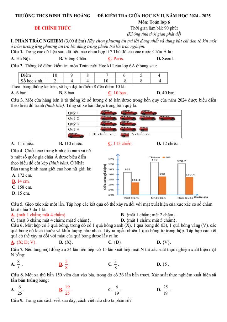 Giải Toán đề giữa kỳ 2 toán 6 năm 2024 – 2025 trường thcs đinh tiên hoàng – khánh hòa với Đáp Án Mới Nhất
