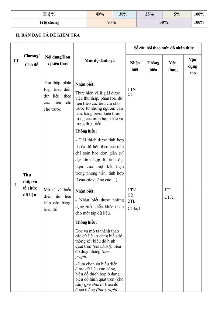 Ma trận Đề giữa kỳ 2 Toán 7 năm 2024 – 2025 trường THCS Đinh Tiên Hoàng – Khánh Hòa: