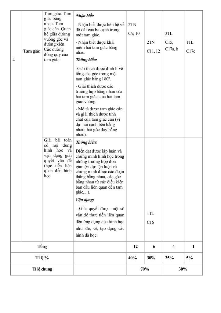 + Tam giác. Tam giác bằng nhau. Tam giác cân. Quan hệ giữa đường vuông góc và đường xiên. Các đường đồng quy của tam giác.