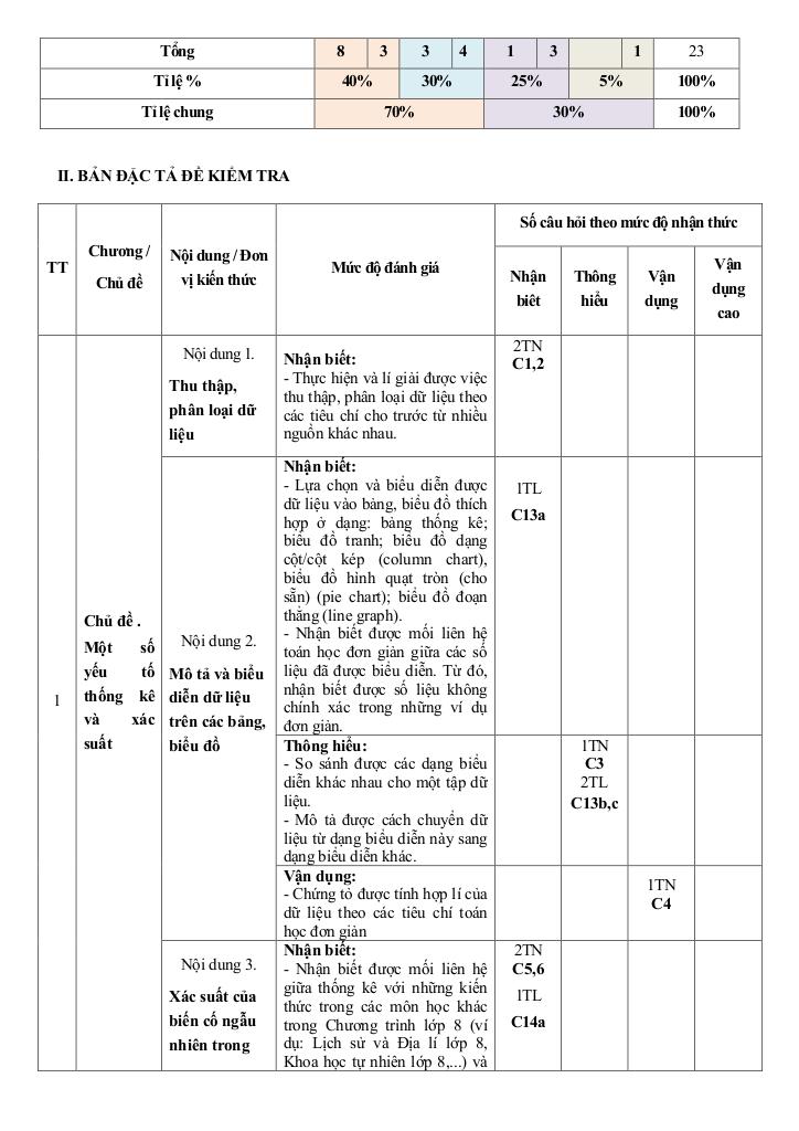 Ma trận Đề giữa kỳ 2 Toán 8 năm 2024 – 2025 trường THCS Đinh Tiên Hoàng – Khánh Hòa: