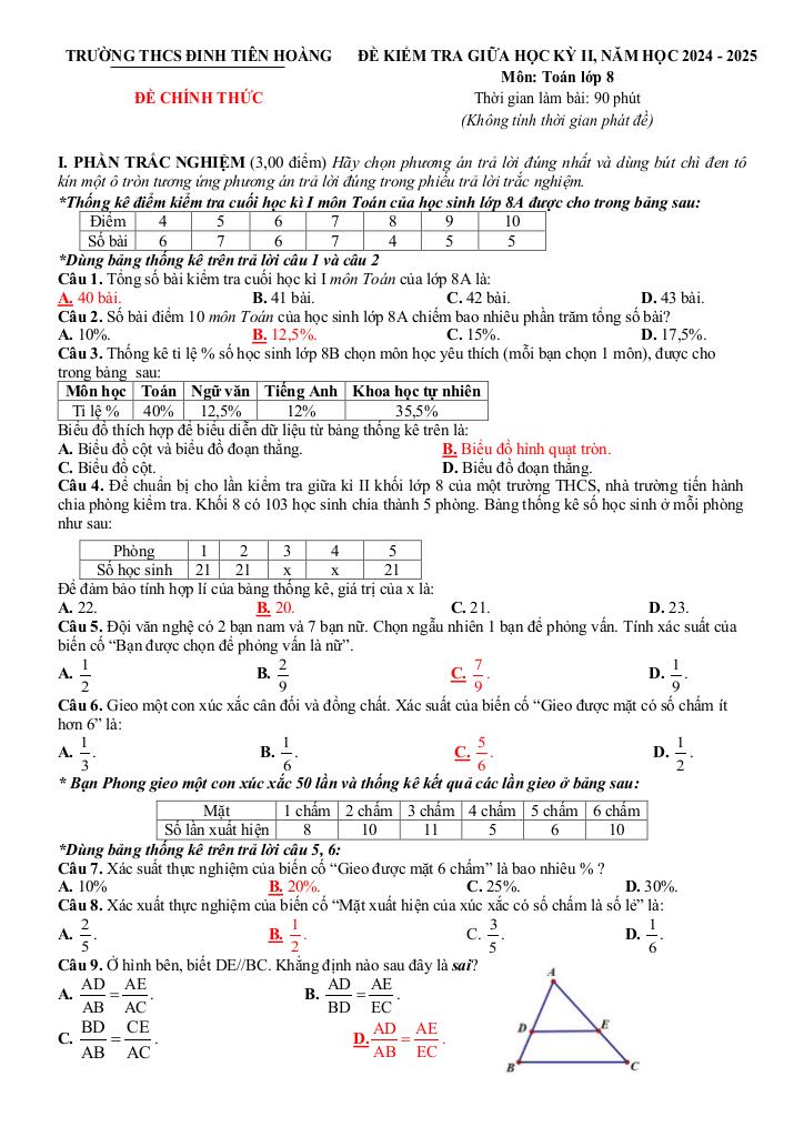 Toán học luôn là một môn học quan trọng, giúp học sinh phát triển tư duy logic và kỹ năng giải quyết vấn đề. Để hỗ trợ các bạn học sinh và giáo viên trong việc học tập và giảng dạy, bài viết này sẽ cung cấp lời giải chi tiết và đáp án chính xác cho chủ đề đề giữa kỳ 2 toán 8 năm 2024 – 2025 trường thcs đinh tiên hoàng – khánh hòa, giúp bạn hiểu sâu và tự tin hơn khi làm bài tập.