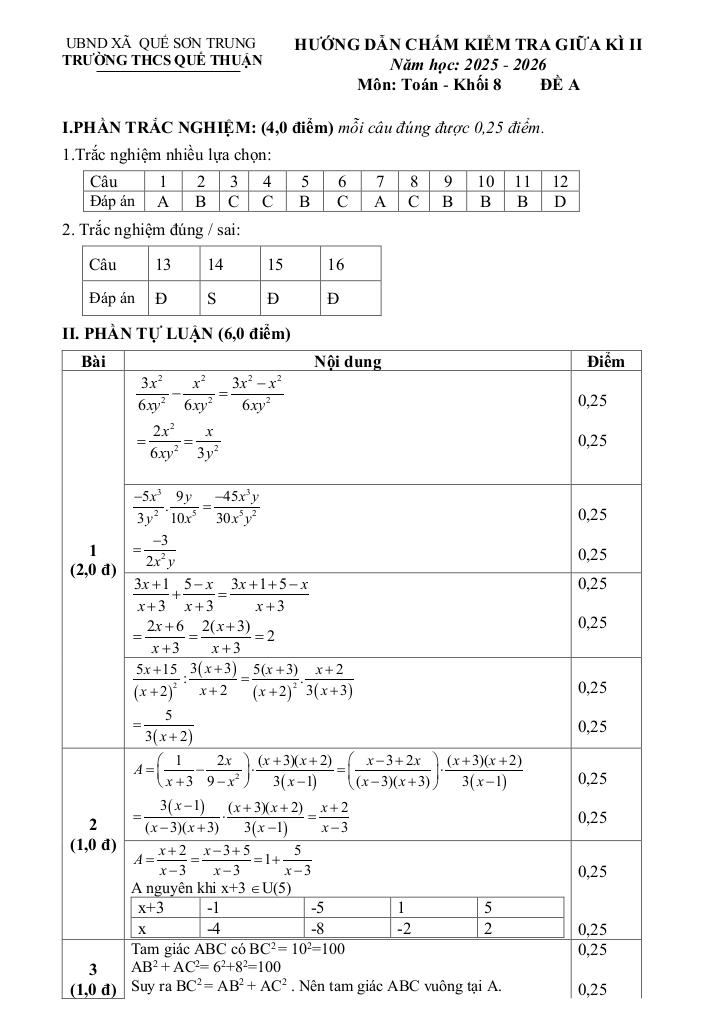 Giải Toán đề giữa kỳ 2 toán 8 năm 2025 – 2026 trường thcs quế thuận – đà nẵng với Đáp Án Mới Nhất
