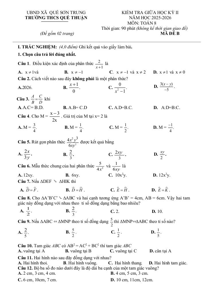 Toán học luôn là một môn học quan trọng, giúp học sinh phát triển tư duy logic và kỹ năng giải quyết vấn đề. Để hỗ trợ các bạn học sinh và giáo viên trong việc học tập và giảng dạy, bài viết này sẽ cung cấp lời giải chi tiết và đáp án chính xác cho chủ đề đề giữa kỳ 2 toán 8 năm 2025 – 2026 trường thcs quế thuận – đà nẵng, giúp bạn hiểu sâu và tự tin hơn khi làm bài tập.