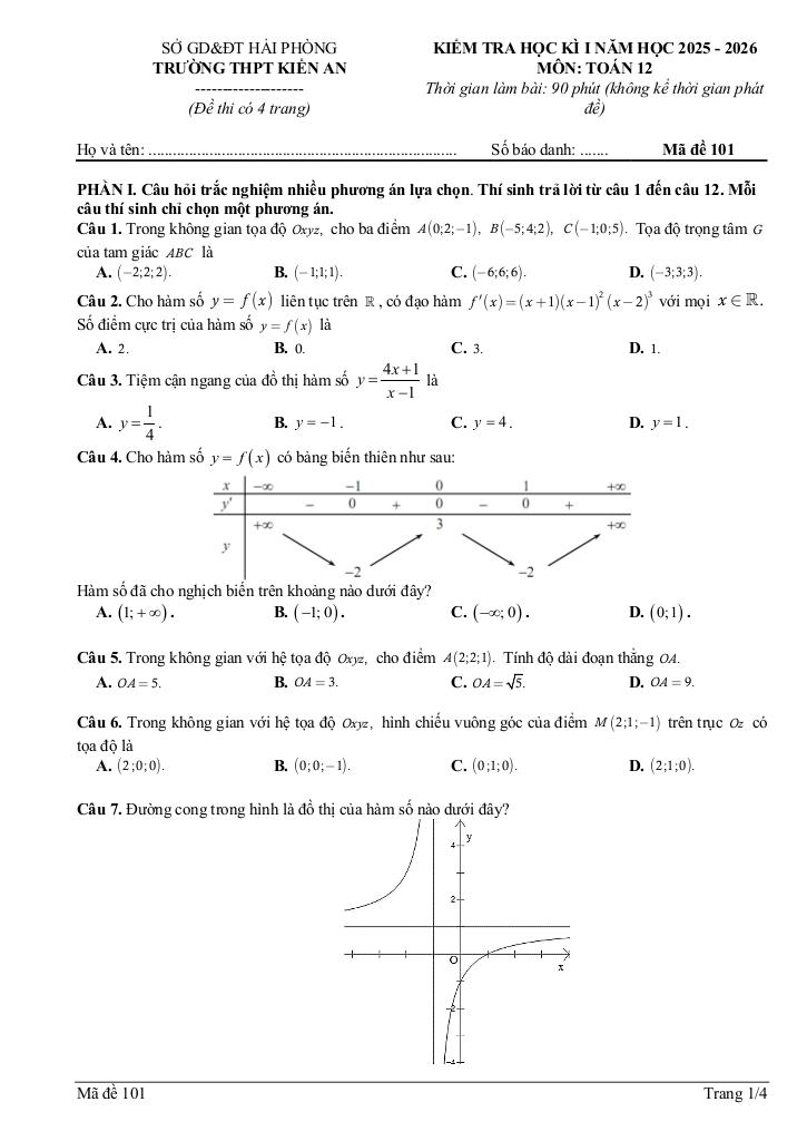 Toán học luôn là một môn học quan trọng, giúp học sinh phát triển tư duy logic và kỹ năng giải quyết vấn đề. Để hỗ trợ các bạn học sinh và giáo viên trong việc học tập và giảng dạy, bài viết này sẽ cung cấp lời giải chi tiết và đáp án chính xác cho chủ đề đề học kì 1 toán 12 năm 2025 – 2026 trường thpt kiến an – hải phòng, giúp bạn hiểu sâu và tự tin hơn khi làm bài tập.