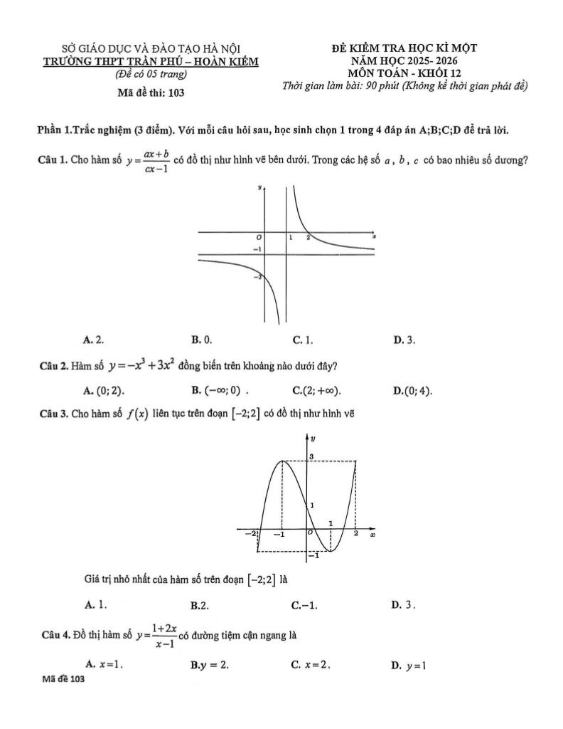 Trích dẫn Đề học kì 1 Toán 12 năm 2025 – 2026 trường THPT Trần Phú – Hà Nội: