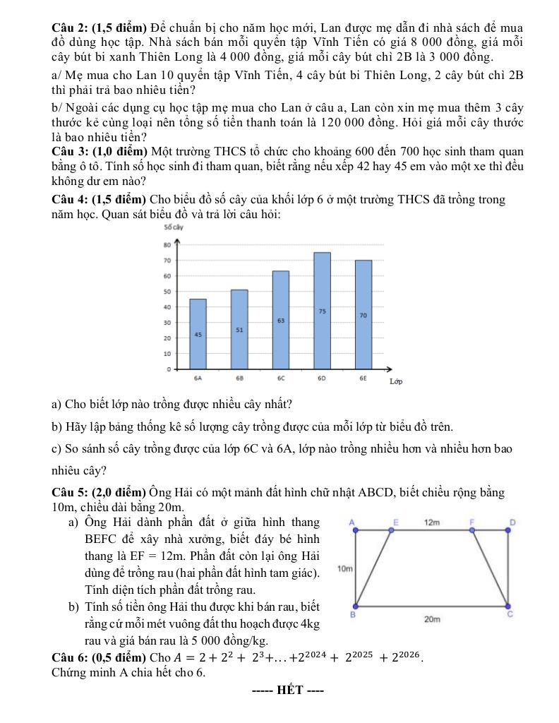Toán học luôn là một môn học quan trọng, giúp học sinh phát triển tư duy logic và kỹ năng giải quyết vấn đề. Để hỗ trợ các bạn học sinh và giáo viên trong việc học tập và giảng dạy, bài viết này sẽ cung cấp lời giải chi tiết và đáp án chính xác cho chủ đề đề học kì 1 toán 6 năm 2025 – 2026 trường thcs lý thánh tông – tp hcm, giúp bạn hiểu sâu và tự tin hơn khi làm bài tập.