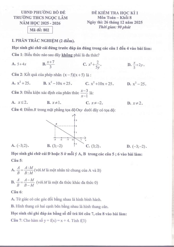 Toán học luôn là một môn học quan trọng, giúp học sinh phát triển tư duy logic và kỹ năng giải quyết vấn đề. Để hỗ trợ các bạn học sinh và giáo viên trong việc học tập và giảng dạy, bài viết này sẽ cung cấp lời giải chi tiết và đáp án chính xác cho chủ đề đề học kì 1 toán 8 năm 2025 – 2026 trường thcs ngọc lâm – hà nội, giúp bạn hiểu sâu và tự tin hơn khi làm bài tập.