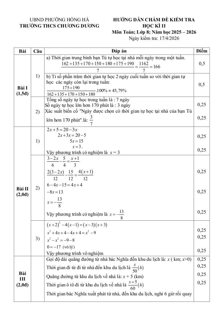 Giải Toán đề học kì 2 toán 8 năm 2025 – 2026 trường thcs chương dương – hà nội với Đáp Án Mới Nhất