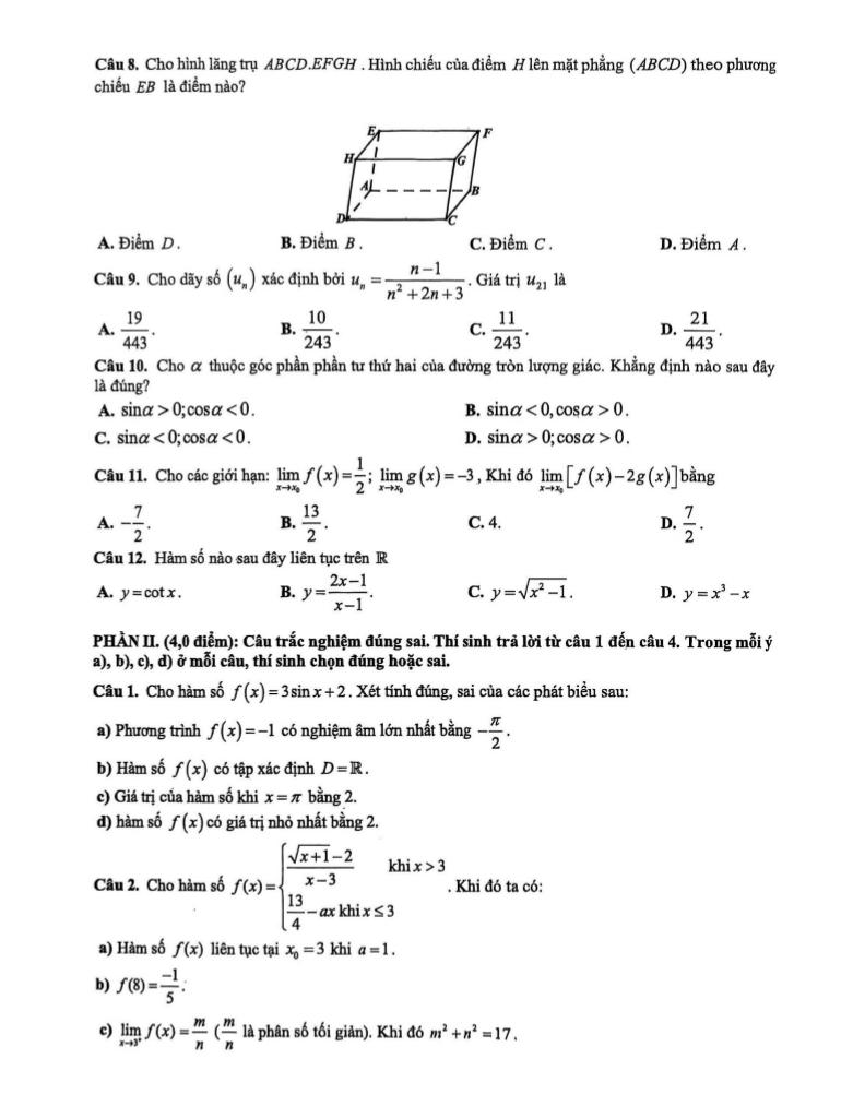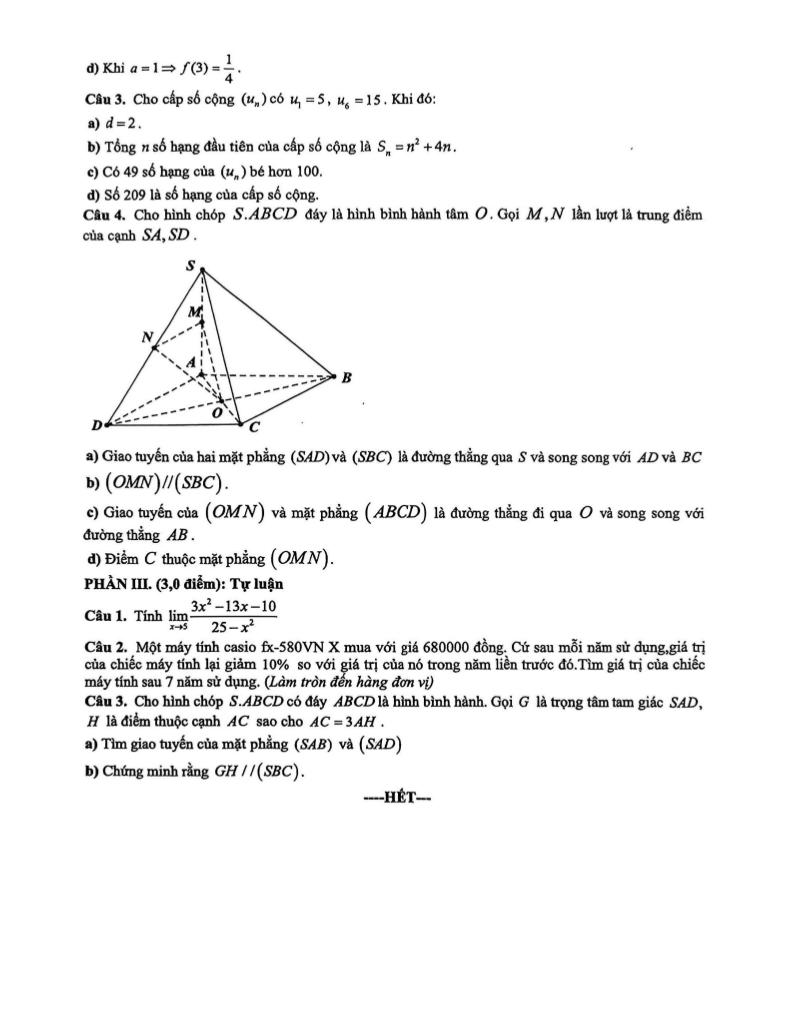 Giải Toán đề học kỳ 1 toán 11 năm 2025 – 2026 trường thpt dương văn dương – tp hcm với Đáp Án Mới Nhất