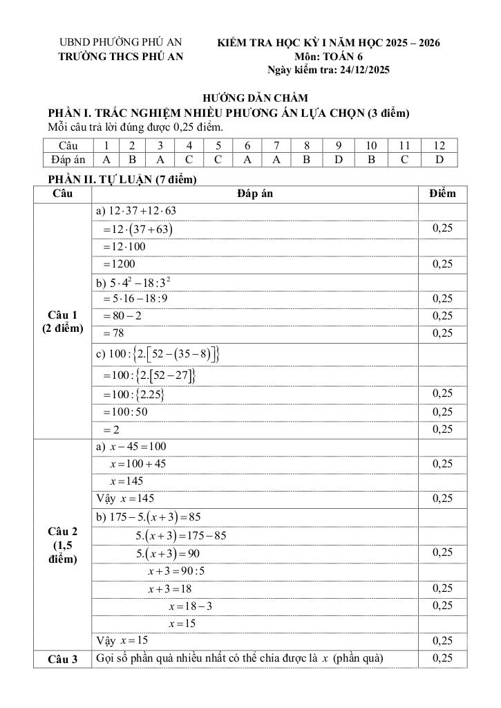 Toán học luôn là một môn học quan trọng, giúp học sinh phát triển tư duy logic và kỹ năng giải quyết vấn đề. Để hỗ trợ các bạn học sinh và giáo viên trong việc học tập và giảng dạy, bài viết này sẽ cung cấp lời giải chi tiết và đáp án chính xác cho chủ đề đề học kỳ 1 toán 6 năm 2025 – 2026 trường thcs phú an – tp hcm, giúp bạn hiểu sâu và tự tin hơn khi làm bài tập.