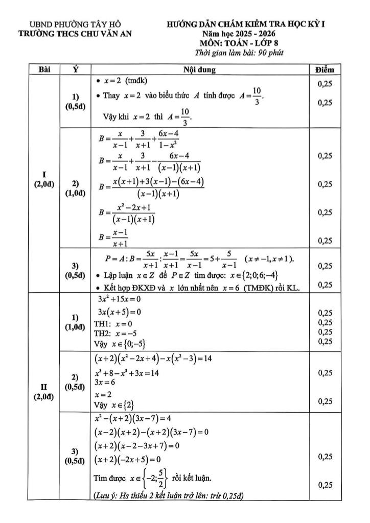Giải Toán đề học kỳ 1 toán 8 năm 2025 – 2026 trường thcs chu văn an – hà nội với Đáp Án Mới Nhất