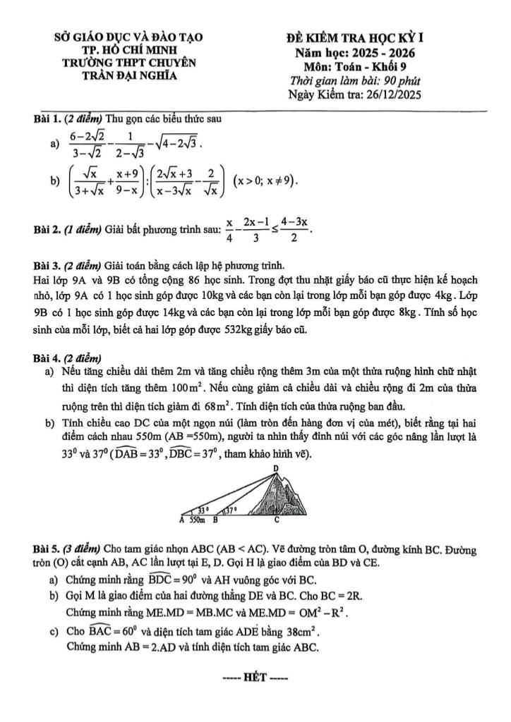 Giải Toán đề học kỳ 1 toán 9 năm 2025 – 2026 trường chuyên trần đại nghĩa – tp hcm với Đáp Án Mới Nhất