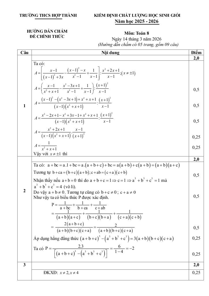 Giải Toán đề kđcl học sinh giỏi toán 8 năm 2025 – 2026 trường thcs hợp thành – thanh hóa với Đáp Án Mới Nhất