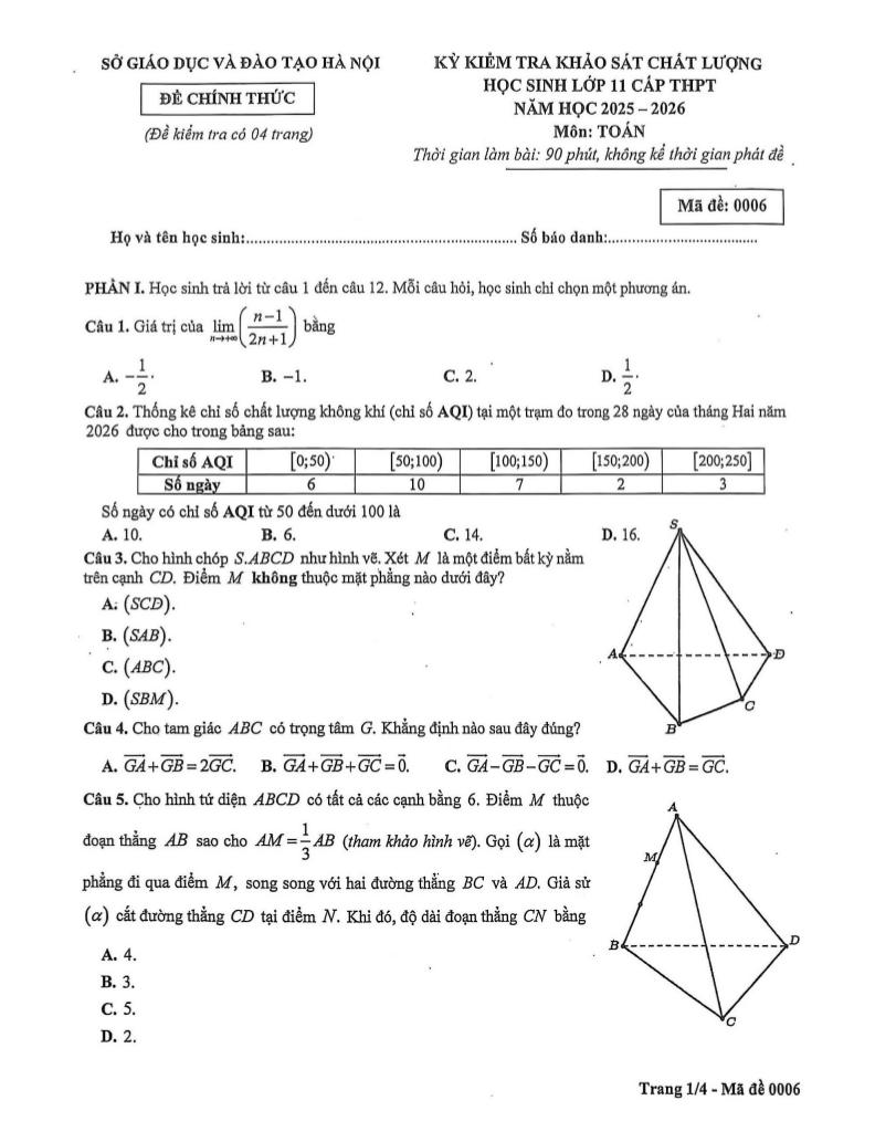 Trích dẫn Đề khảo sát chất lượng Toán 11 năm 2025 – 2026 sở GD&ĐT Hà Nội: